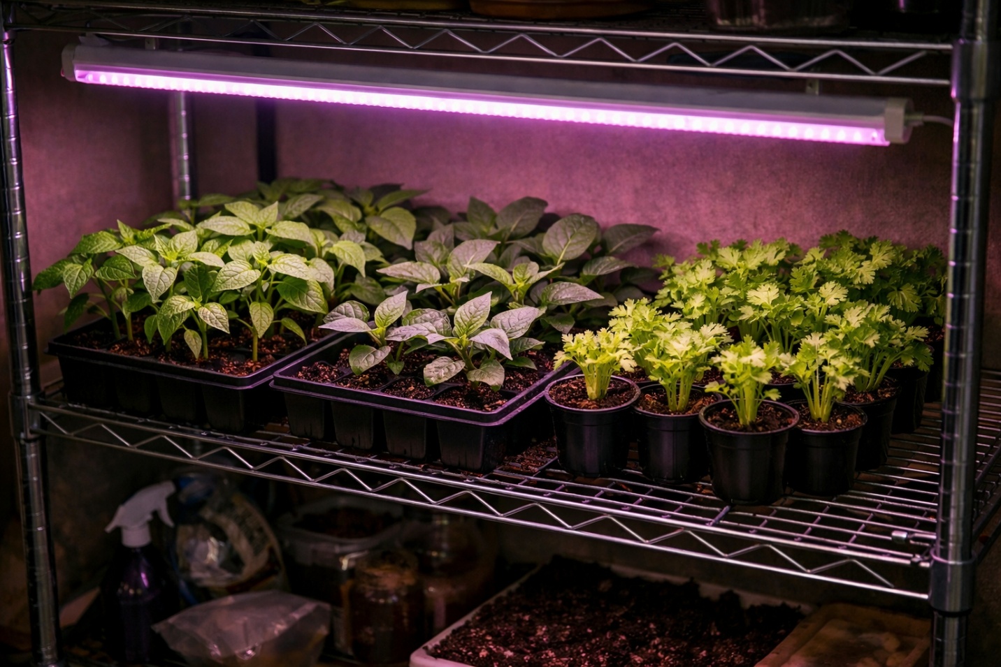 Решение:фитолампы или светодиодные лампы полного спектра. Досвечивайте рассаду до 12–14 часов светового дня. Лампы размещайте на высоте 15–20 см над растениями, по мере роста поднимайте.