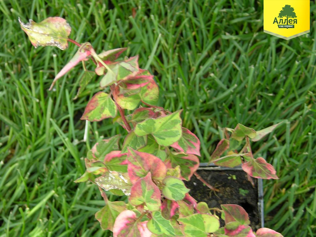 - Стебли красные. Листья зелено-желто-красные, черешковые, цельнокрайние, сердцевидные у основания, с заостренной верхушкой