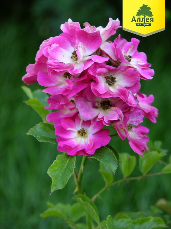 - ароматные не махровые цветки густо-розового цвета с крупным белым глазком