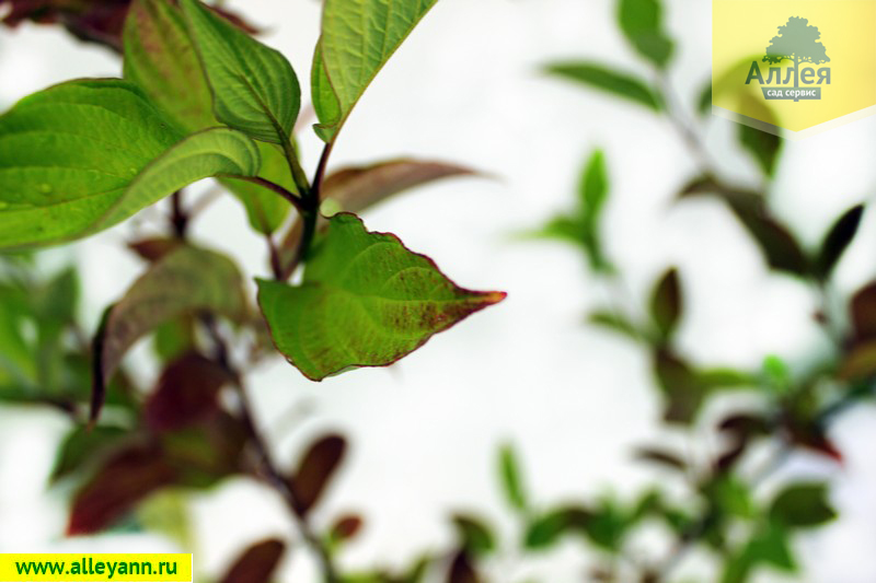 - прямостоячий кустарник с красными побегами